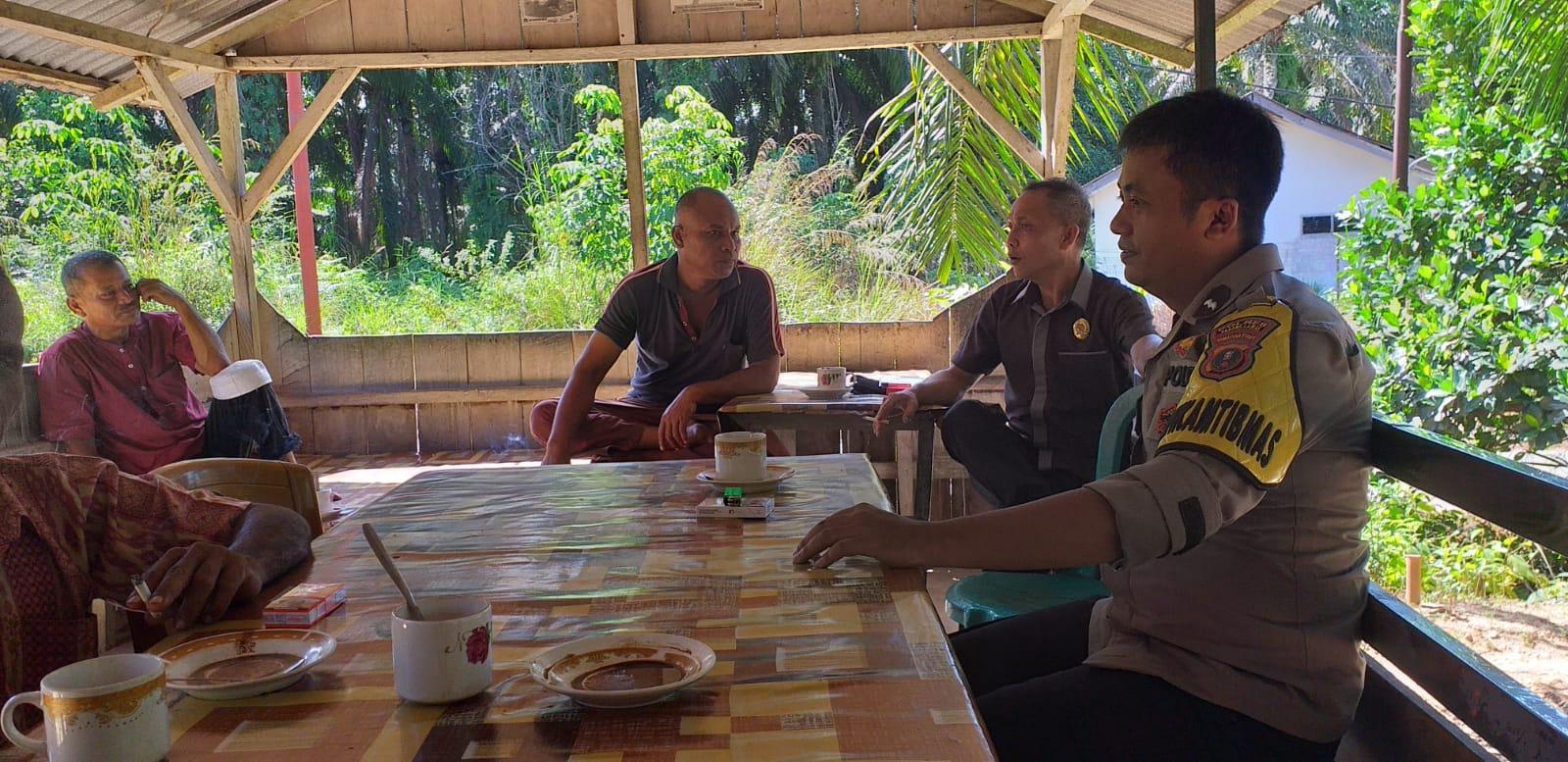 Personel Bhabinkamtibmas Polsek Sei Tualang Raso melaksanakan kegiatan sambang dan Jumat Curhat di sebuah Kedai di Jalan Pasar