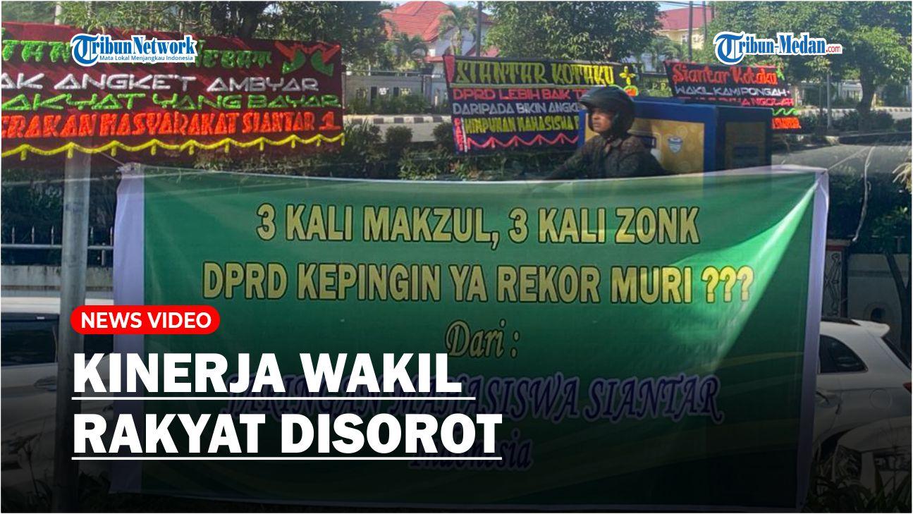 Sejumlah papan bunga bermakna protes terhadap kinerja Anggota DPRD Siantar berjajar di depan kantor dewan, Jalan H Adam Malik, Kota Siantar.