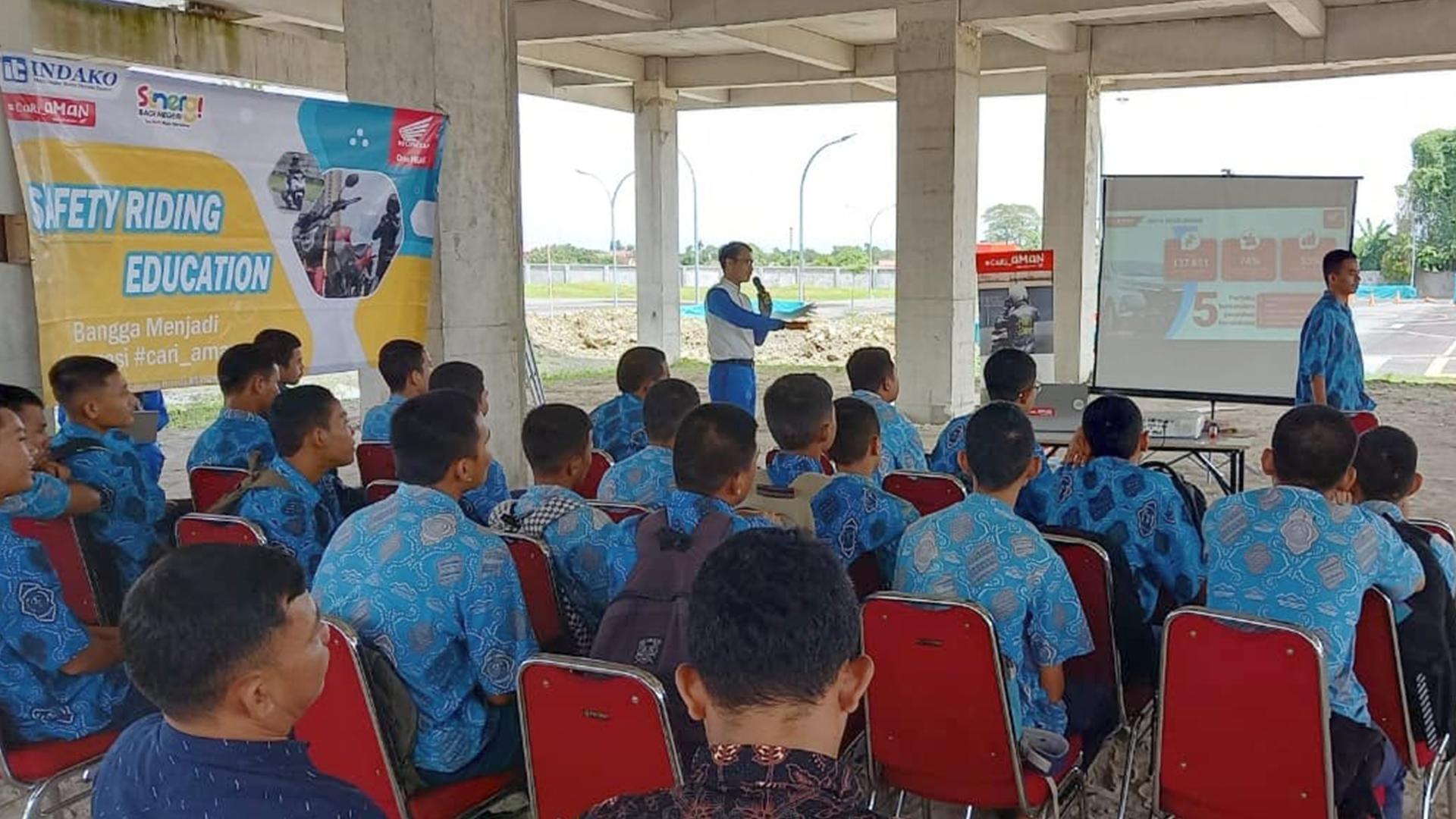 Indako Trading Coy menggelar edukasi keselamatan berkendara kepada pelajar SMK PAB 1 Medan untuk berkontribusi menciptakan lalu lintas tertib dan aman