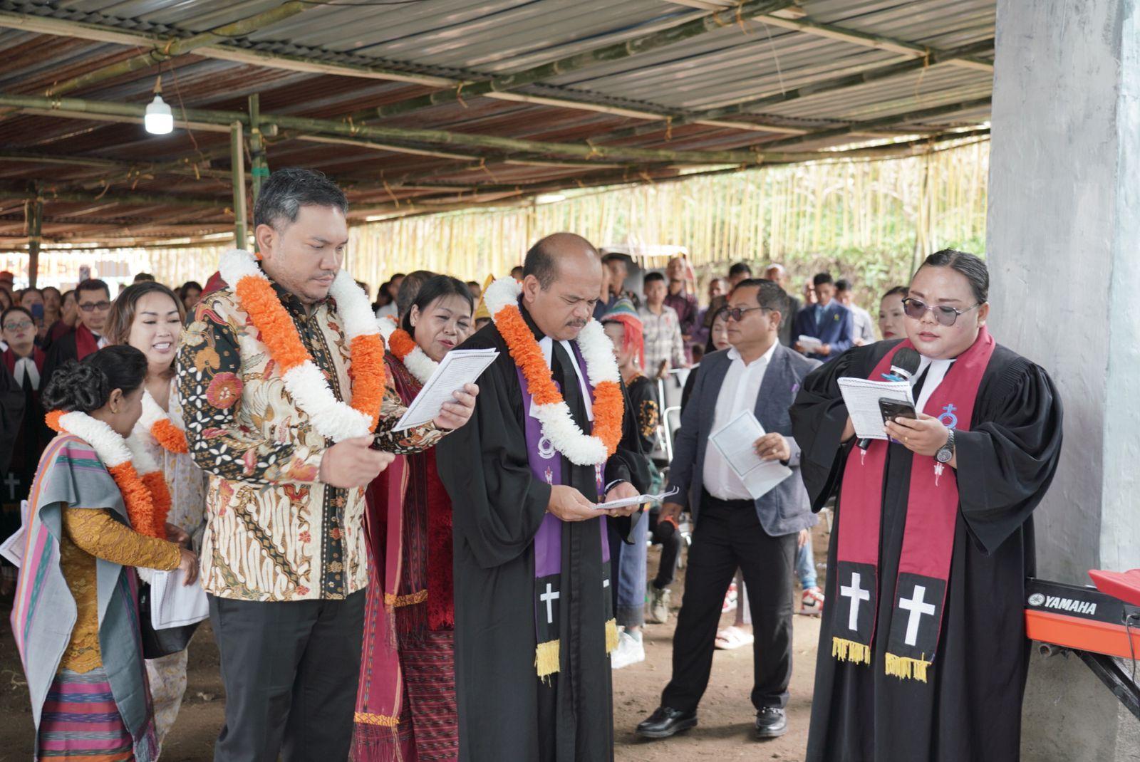 Franc Bernhard Tumanggor menghadiri peresmian Kuria Gereja GKPPD Kuta Baru Resort Prongil di Desa Prongil Julu