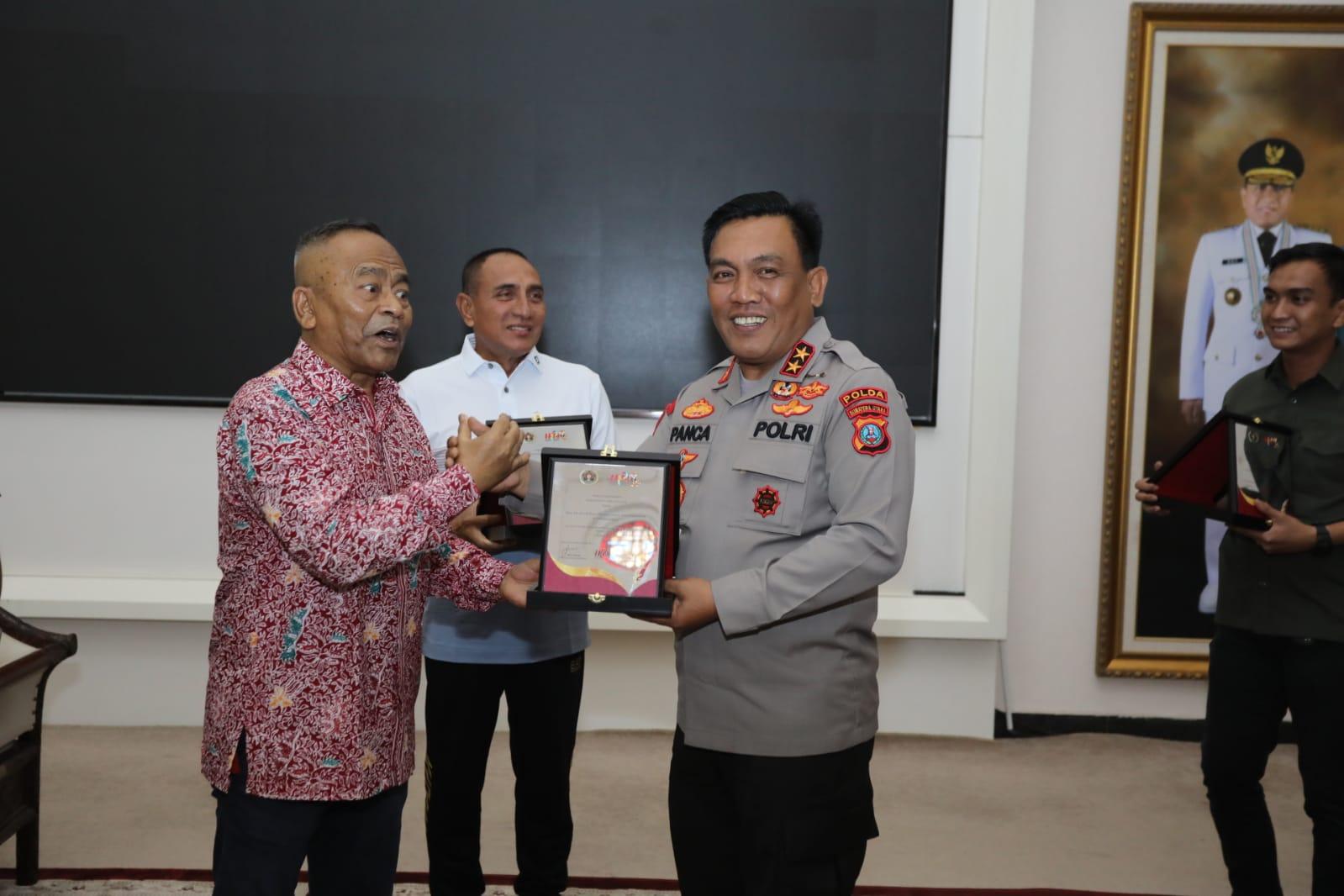 Kapolda Sumut Irjen Pol Panca Putra Simanjuntak menerima penghargaan atas suksesnya penyelenggaraan Peringatan Hari Pers Nasional (HPN) 2023 yang