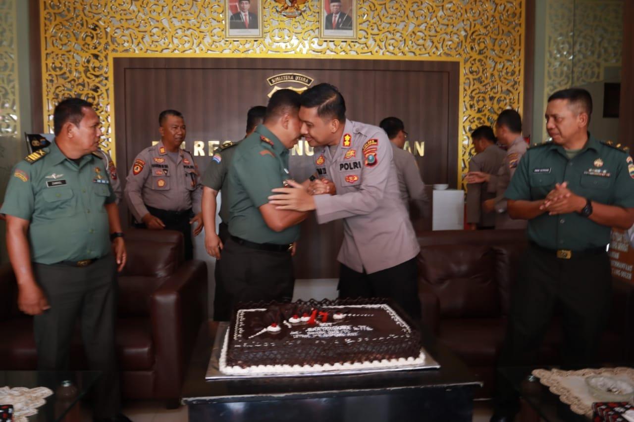 Dalam kesempatan tersebut Kapolres Simalungun AKBP Ronald FC Sipayung mendapat suprise kue dari Dandim 0207/Simalungun dan suapan kue dari Wakil