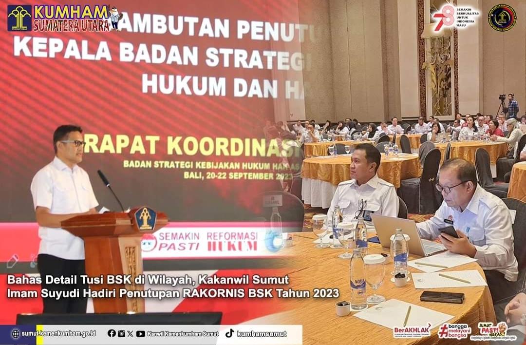 Kantor Wilayah Kementerian Hukum dan HAM Sumatera Utara melalui Divisi Pelayanan Hukum dan HAM mengikuti Penutupan Rapat Koordinasi