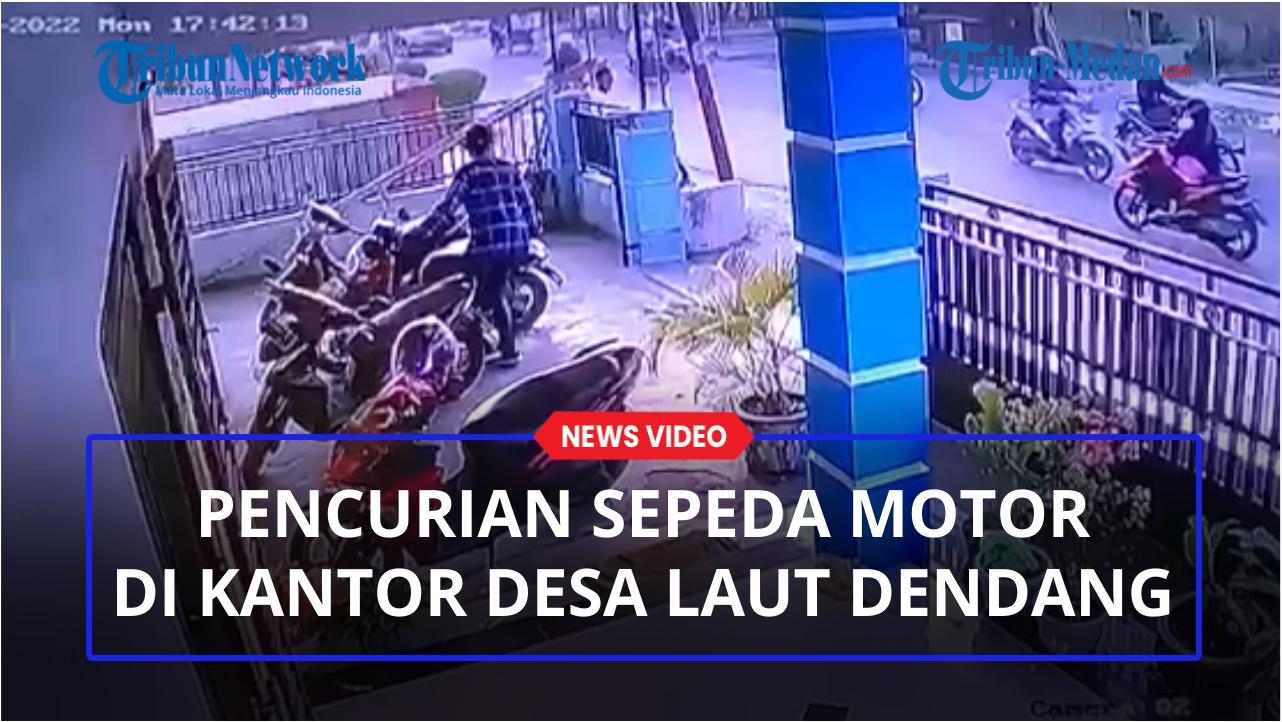 DUA Pria Larikan Sepeda Motor di Kantor Desa Laut Dendang, Aksinya Terekam CCTV