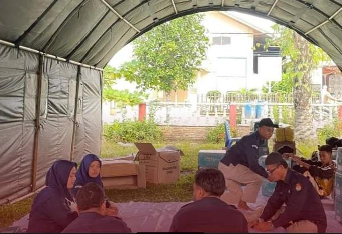 Tenda darurat menjadi tempat kerja sementara Komisi Pemilihan Umum (KPU) Kabupaten Labuhan Batu Utara (Labura)