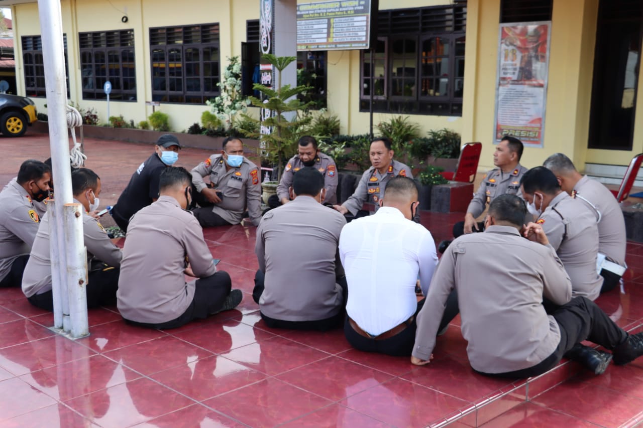 Kapolres Dairi AKBP Wahyudi Rahman, SH, SIK, MM memimpin pelaksanaan Anev Mingguan di Depan Lobby Gedung Utama Polres Dairi Jalan Sisingamangaraja.