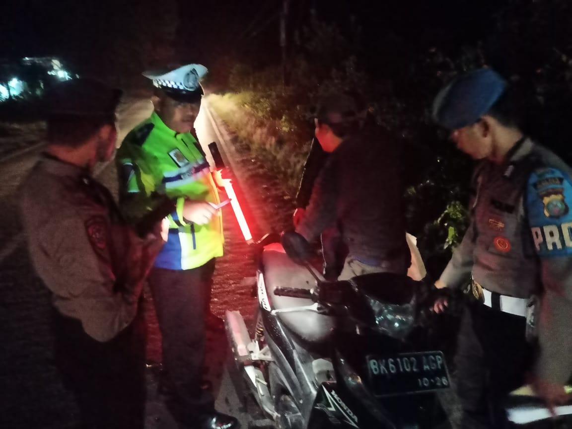 Personil Sat Samapta Polres Humbahas laksanakan patroli Kegiatan Rutin Yang Ditingkatkan (KRYD) pada malam hari di Wilayah Hukum Polres Humbahas, Rabu