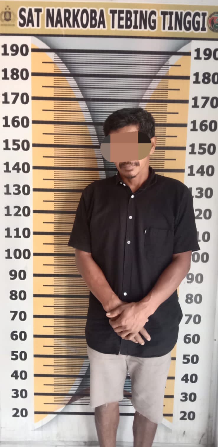 inisial HP (33) diamankan Satresnarkoba Polres Tebing Tinggi saat sedang duduk menonton televisi sambil menunggu pembeli narkoba, pria ini diringkus