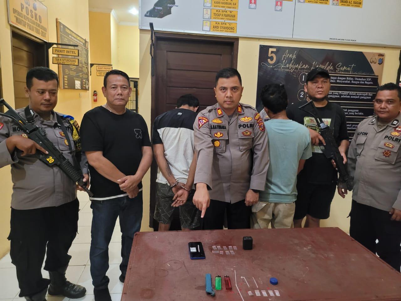 "Kapolsek Sipispis AKP Syamsul Arifin Batubara menunjukkan barang bukti sabu seberat 0,53 gram beserta perlengkapan lainnya, bukti kuat aktivitas pere