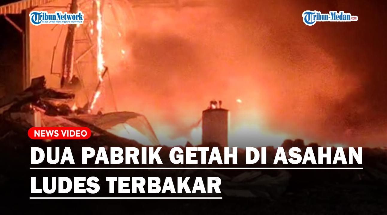 Dua pabrik getah di Kelurahan Kedai Ledang, Kecamatan Kota Kisaran Timur, Kabupaten Asahan terbakar hebat, Senin (21/11/2022) dini hari.