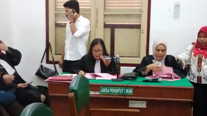 Dua kurir heroin Muhammad Azhar Nasution (41) dan Andi Nova Siregar (35) tampak kaget usai divonis pidana penjara selama seumur hidup di PN Medan.