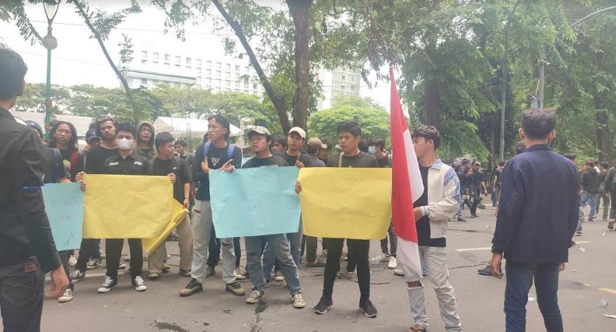 Dalam orasinya, mahasiswa mendesak agar anggota DPRD Sumut dari semua fraksi yang ada, datang menemui mereka.