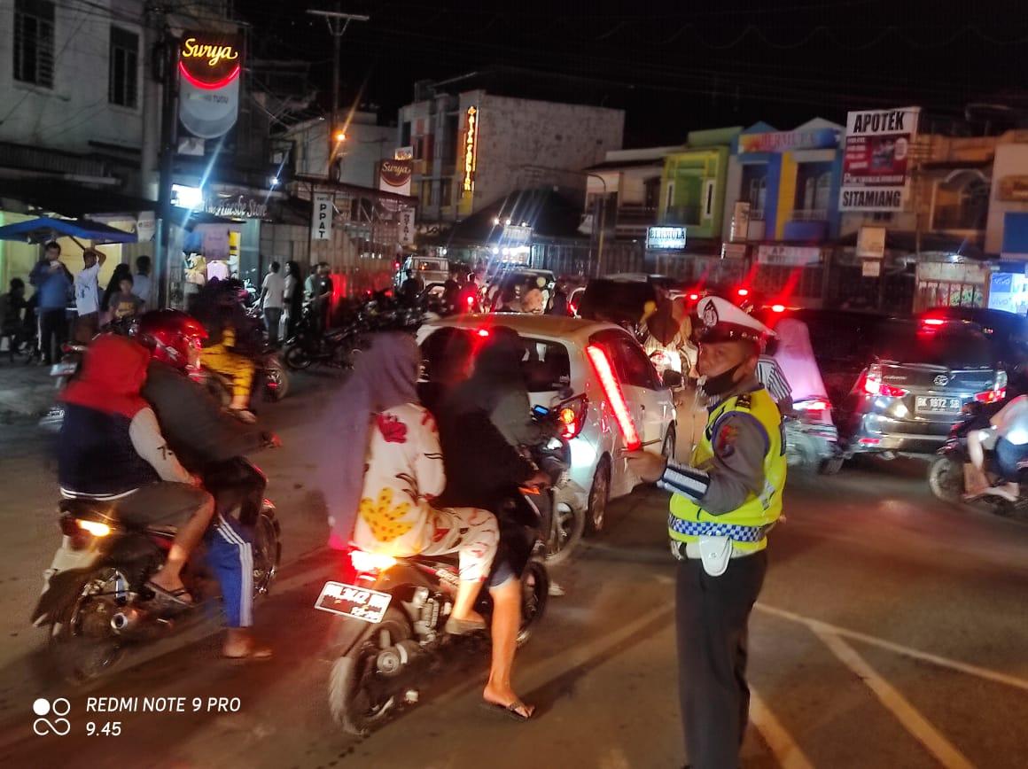Personel Polres Padangsidimpuan diturunkan melakukan pengamanan dan mengantisipasi membludaknya masyarakat saat melaksanakan takbiran keliling