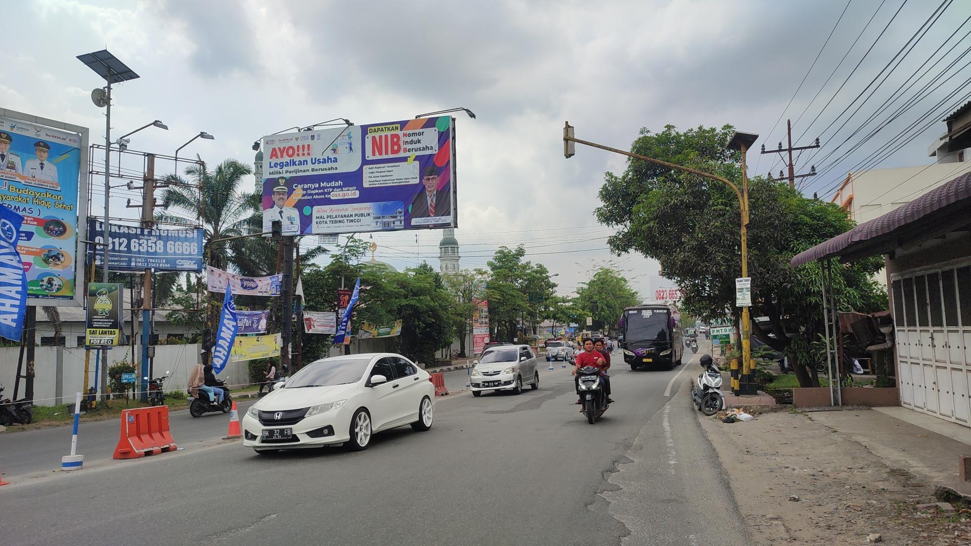 Kondisi lalu lintas di Kota Tebingtinggi musim arus balik mudik lebaran tampak ramai dan lancar