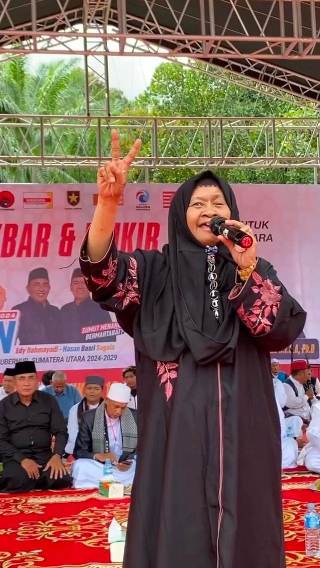 Ibu dari Kapolres Tapsel, AKBP Yasir Ahmadi, SIK, bernama Hj. Farida Hanum Matondang mendukung pasangan calon gubernur Sumut nomor 2, Edy-Hasan.