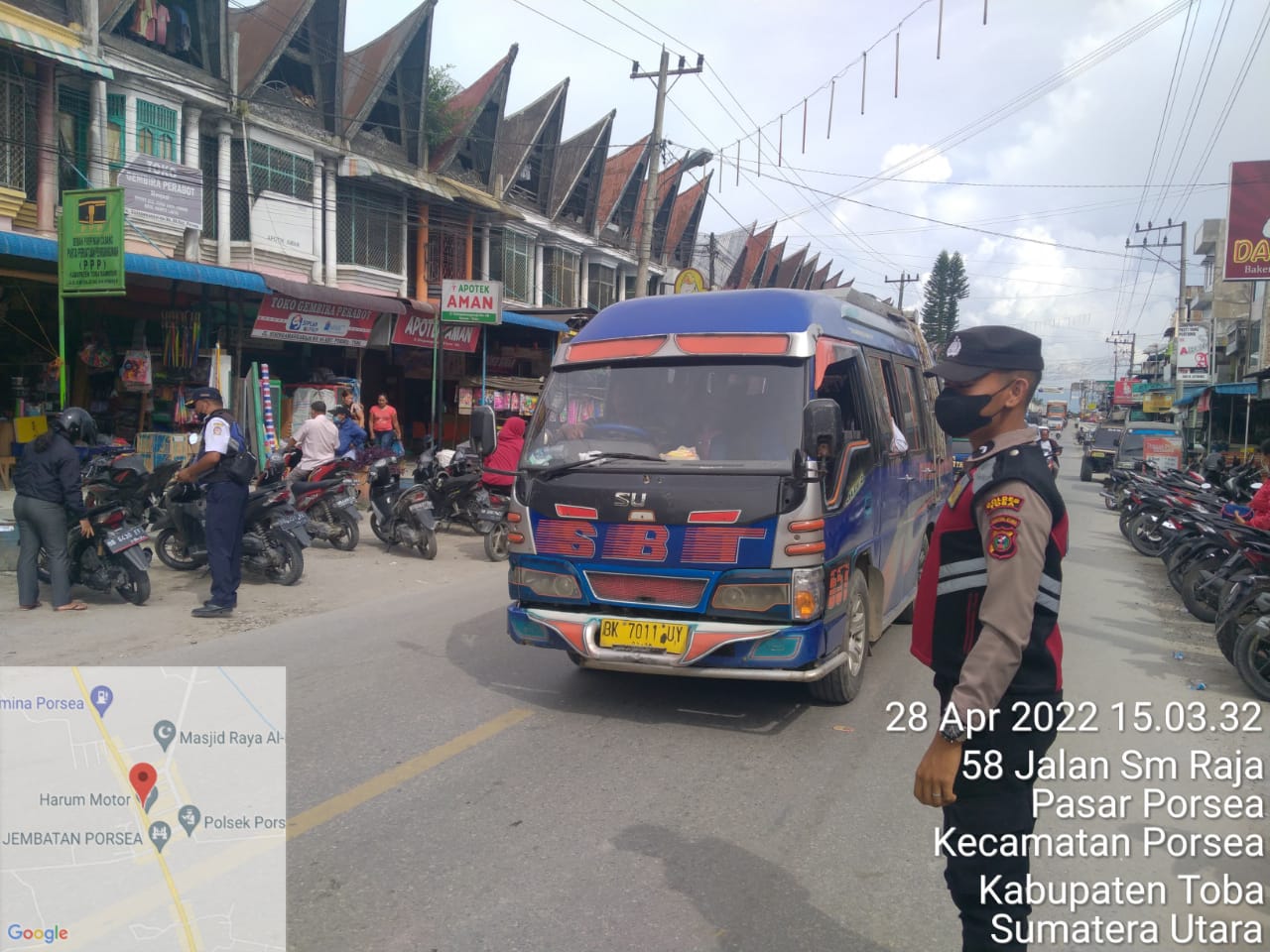 Polres Toba memberikan pelayanan prima kepada masyarakat, Anggota Sat Samapta Polres Toba menggelar pengaturan lalu lintas, Kamis (28/4/2022) Sore