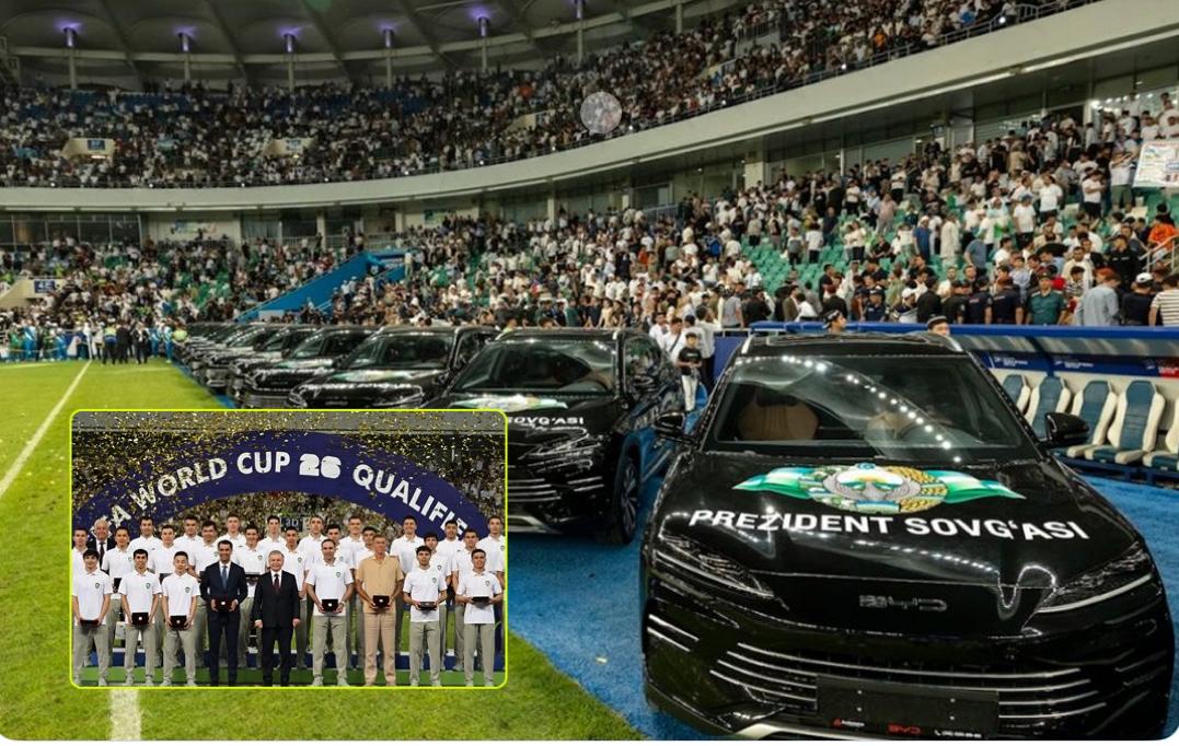 Orang nomor satu di Uzbekistan memberikan hadiah berupa 30 unit mobil listrik produksi China, BYD, untuk semua anggota tim nasional.