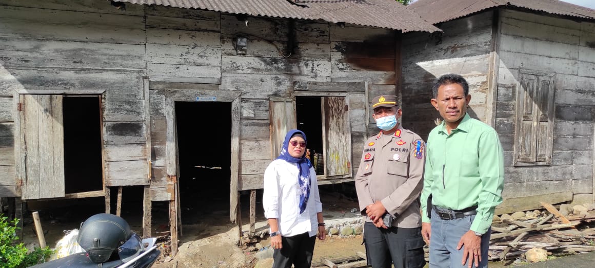 Kapolsek Sipirok, Polres Tapanuli Selatan, AKP Ismaya, bersama anggota, menyalurkan bantuan bedah rumah dari Kapolda Sumut, Irjen RZ Panca Putra
