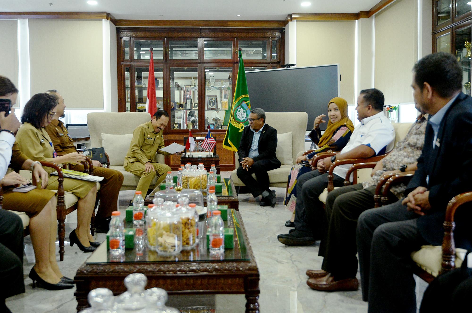 Arief S Trinugroho menerima kunjungan kehormatan delegasi Kerajaan Negeri Pulau Pinang, Malaysia di ruang kerja lantai 9 Kantor Gubernur Sumut
