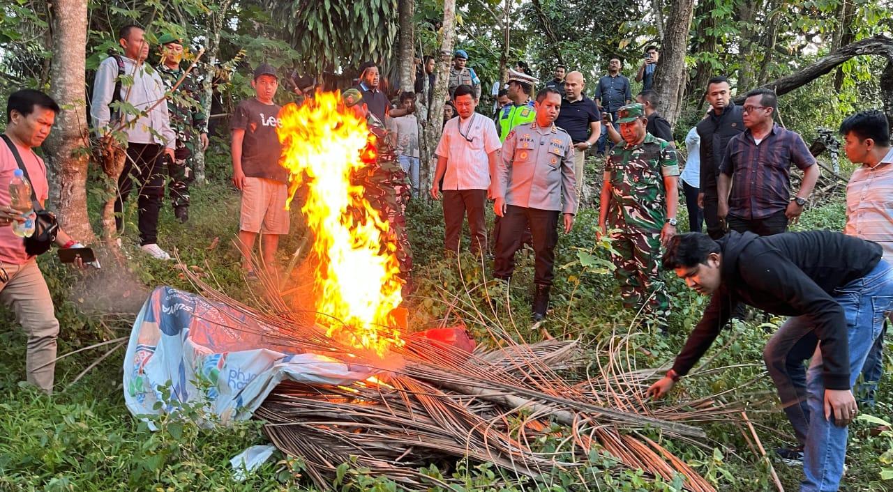 Gubuk itu yang selama ini disebut-sebut warga sebagai sarang peredaran narkoba dibongkar dan dibakar aparat gabungan