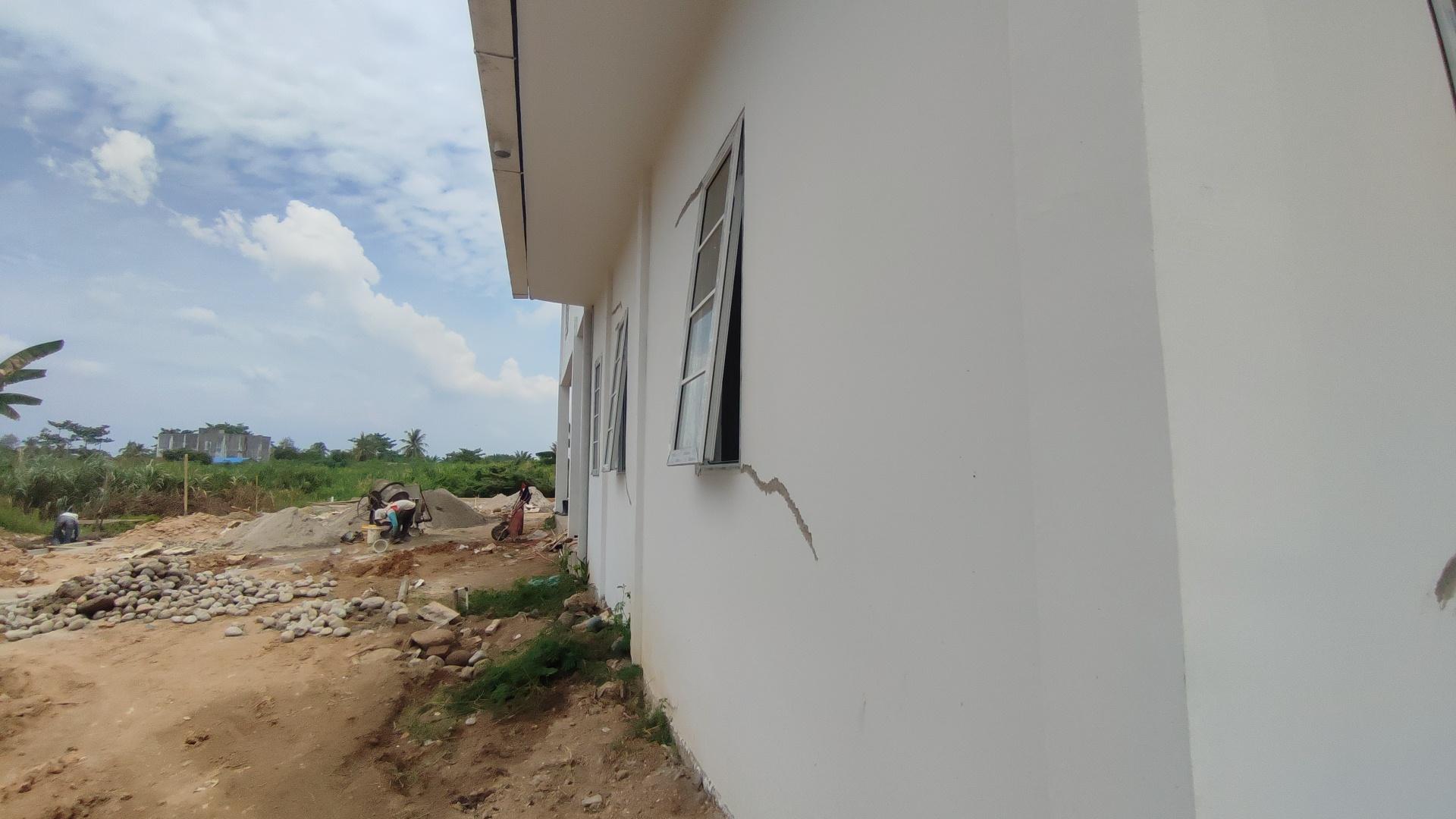 Kini beberapa retakan pada dinding gedung dua lantai yang terletak di Kecamatan Sei Rampah sudah didempul.