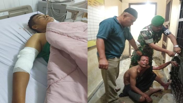 Sertu Mansar mengalami luka bacok di pipi kiri, kepala belakang, tangan kanan hingga paha kanan akibat diserang bertubi-tubi oleh pelaku