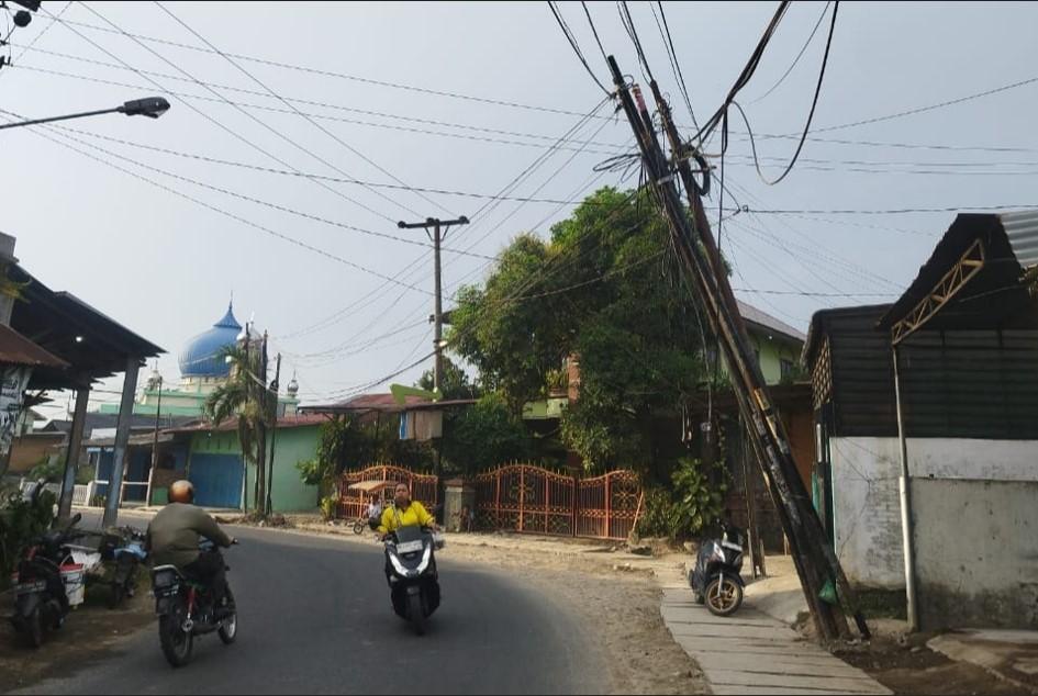 4 Tiang Listrik dan WiFi Nyaris Tumbang di Jalan Klambir V Medan, Dibiarkan selama 2 Minggu