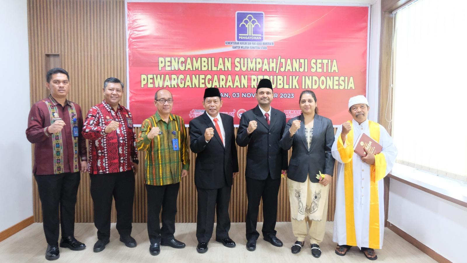 Kepala Kantor Wilayah Kementerian Hukum dan HAM Sumut, Mhd. Jahari Sitepu mengambil sumpah dan janji setia pewarganegaraan