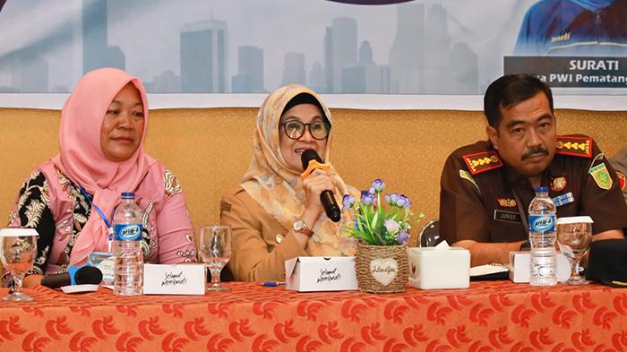 SIANTAR - Wali Kota Pematang Siantar dr Susanti Dewayani SpA menyapa para jurnalis, pimpinan organisasi wartawan, dan pimpinan organisasi perusahaan