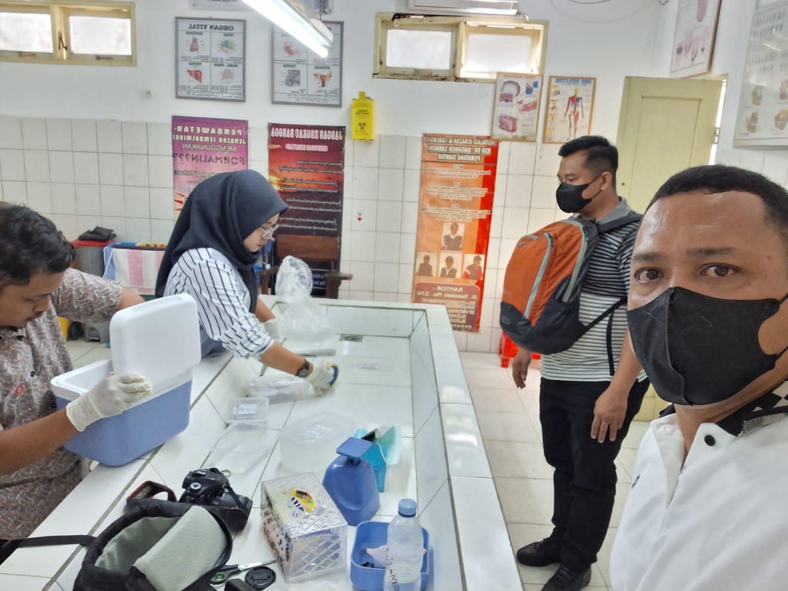 Petugas Polsek Serbalawan bersama Tim INAFIS Polres Simalungun saat melakukan olah TKP di lokasi penemuan mayat yang diduga korban kecelakaan