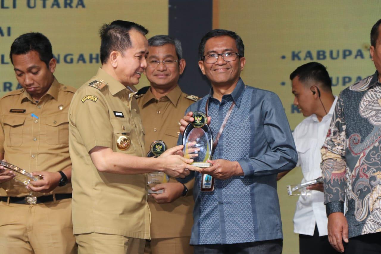 Bupati Toba menerima Anugerah Keterbukaan Informasi Publik Kategori Informatif Badan Publik Tahun 2024, diserahkan langsung oleh Pj. Gubernur Sumut