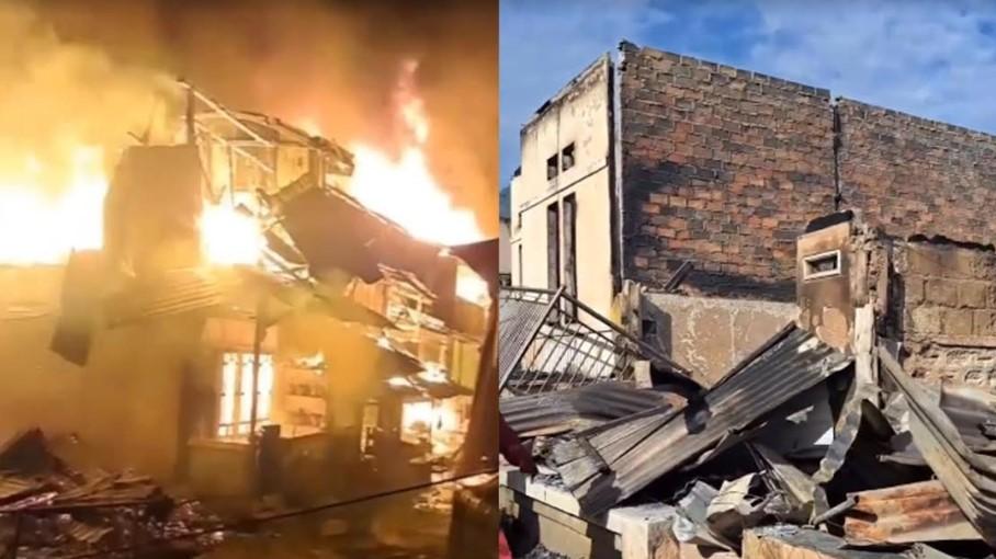 Bangunan yang sebagian terbuat dari kayu membuat api dengan cepat merambat ke bangunan lainnya yang membuka usaha kafe.
