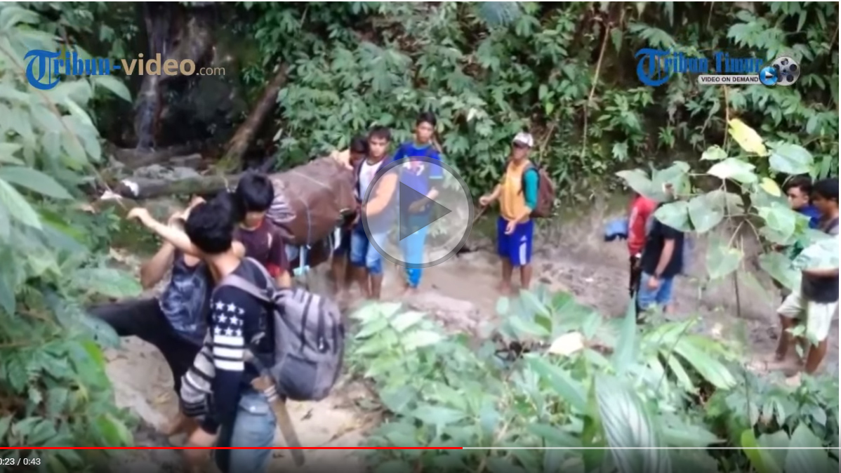 Puluhan warga Desa Onondowa, Kecamatan Rampi, Kabupaten Luwu Utara, Sulawesi Selatan (Sulsel) terpaksa bahu membahu menggotong mayat keluarga