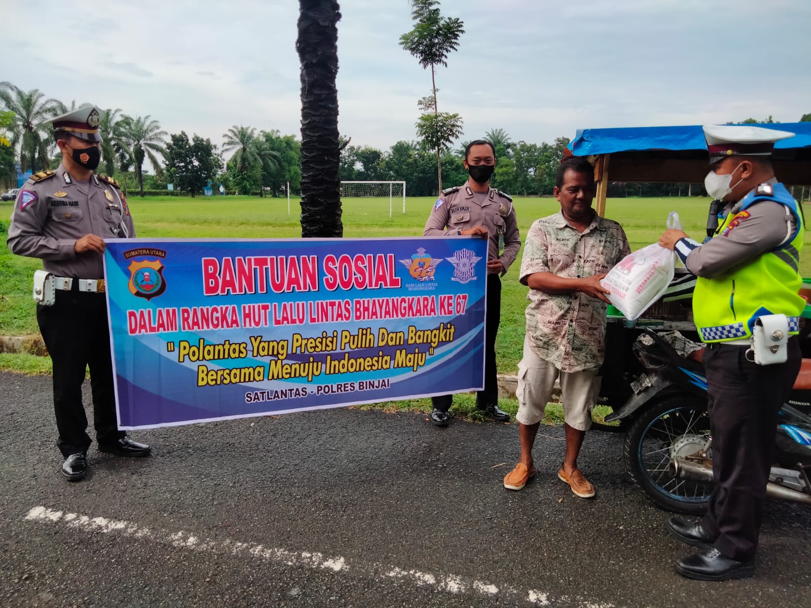 Sambut Hari Jadi ke-67, Sat lantas Polres Binjai Berbagi Kasih Bantu Masyarakat Kurang Mampu