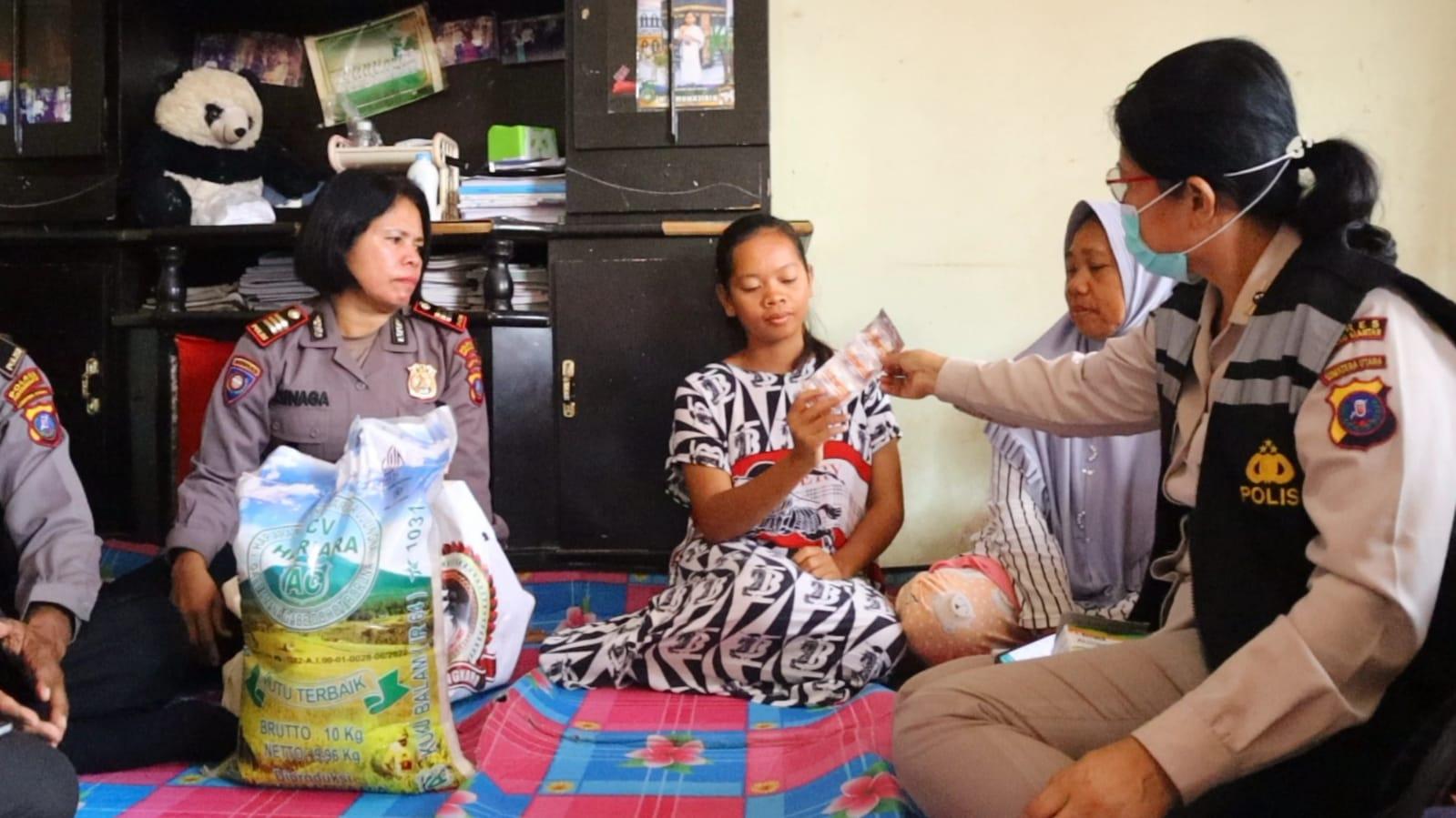 Polres Pematangsiantar memberikan layanan trauma healing kepada Mey Handayani Simatupang, korban selamat saat terseret arus banjir di Jalan Viyata