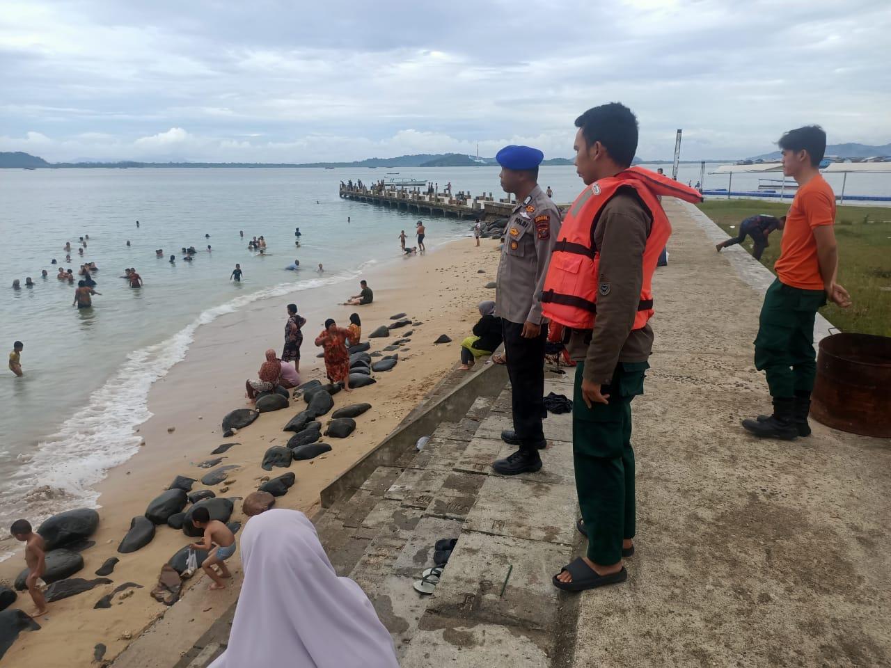 Personel Sat Polairud Polres Sibolga bersama BPBD Kota Sibolga melakukan patroli di Pelabuhan Lama Sibolga, mengawasi keselamatan pengunjung