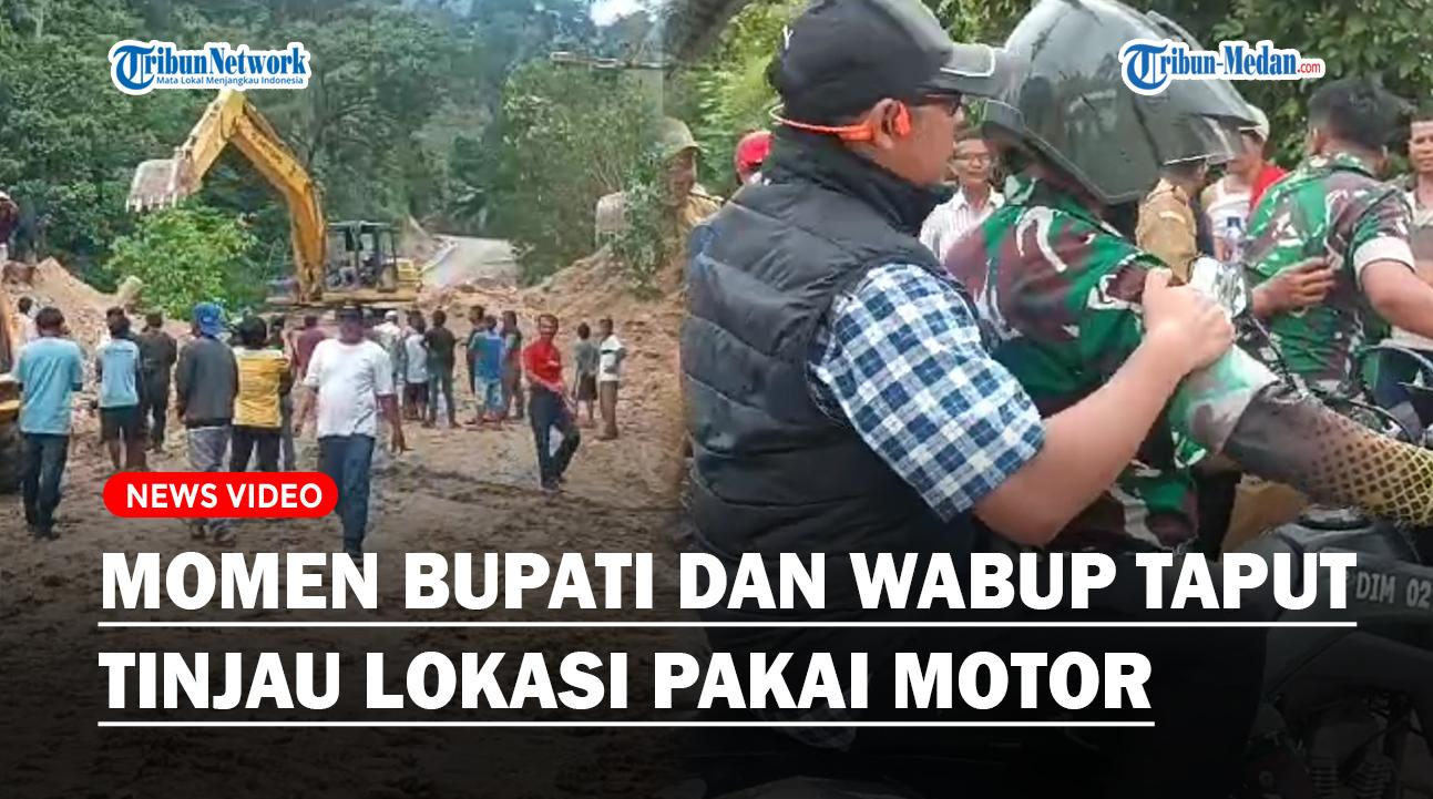 Wabup Taput Deni Lumbantoruan setia menemani warga sekitar selama proses pembersihan sisa material longsor di Pahae Julu, Taput, Rabu (19/3/2025).